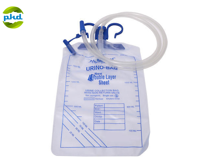 Urine collecting bag used for short or long term urine drainage. Moulded handle facilitates easy handling of bag and holds the tube in upright position to prevent kinking.